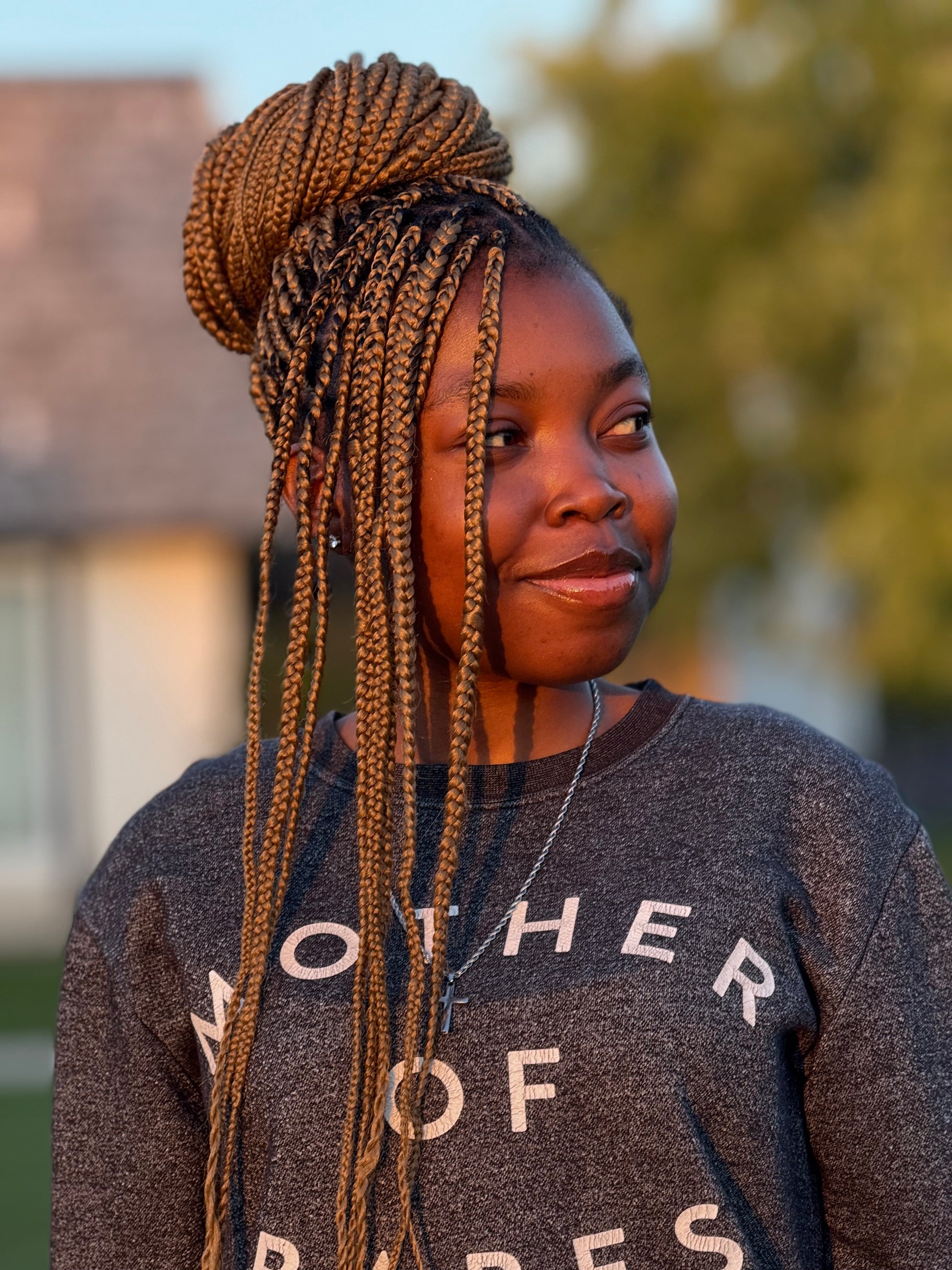 The packaging design has a vibrant gradient background of blue and pink with gold text highlighting “3X” to emphasize triple volume. The center label displays a smiling woman with bright red braids, representing how the product looks when styled. Below her picture, there’s a product information section showing: