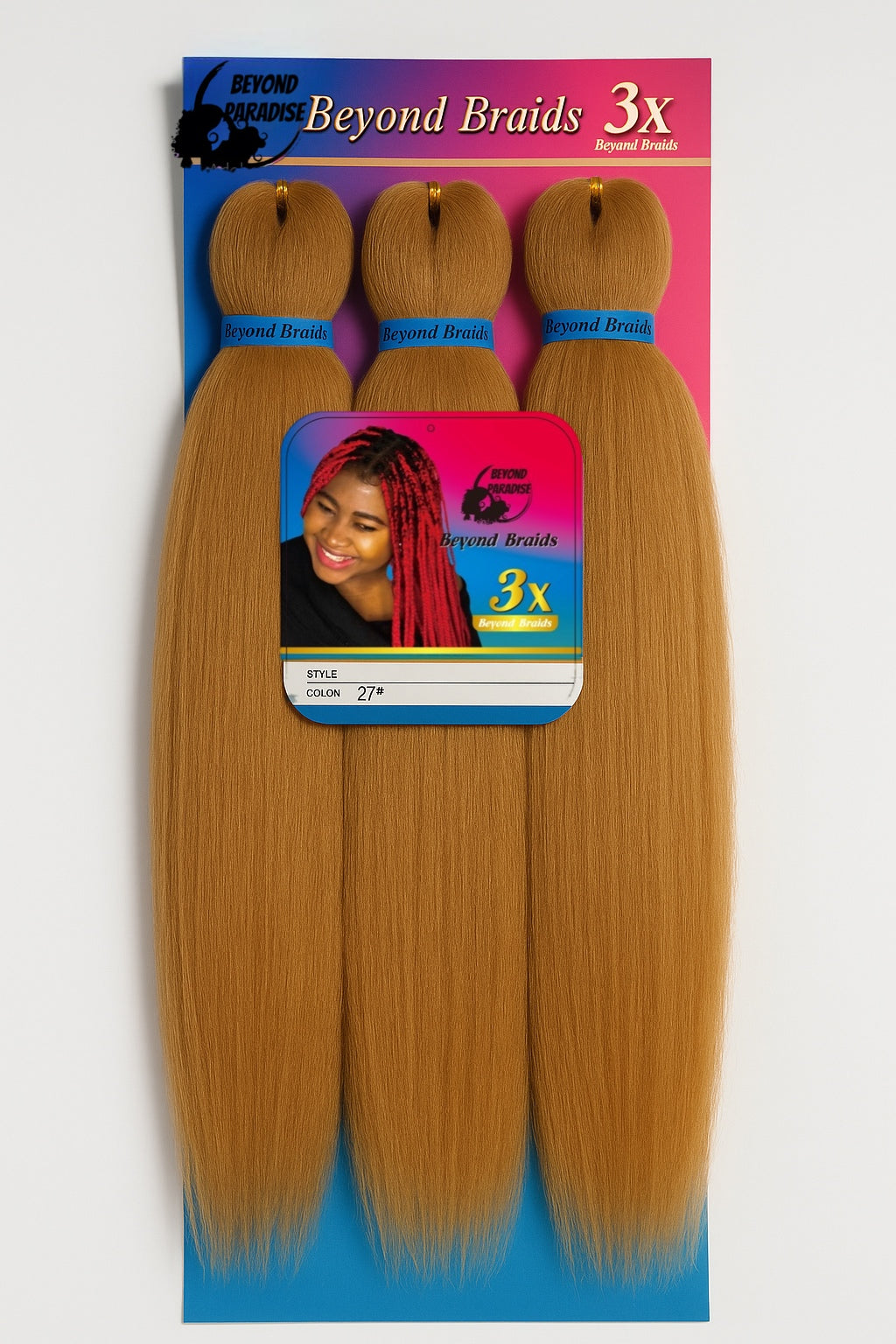 three bundles of long, straight, pre-stretched hair in a warm honey-blonde shade (#27).